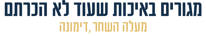 "מעלה השחר" מבית אבאל הוא פרויקט מגורים חדש בשכונת השחר בדימונה, המציע לכם מגוון רחב של דירות, בתכנון שמתאים למשפחות בתחילת הדרך וגם למשפרי דיור. תנאי התשלום הנוחים מאפשרים לכם להתחיל את הדרך לבית חדש בהתחייבות כספית נמוכה היום, ולשלם את עיקר הסכום סמוך לקבלת המפתח.